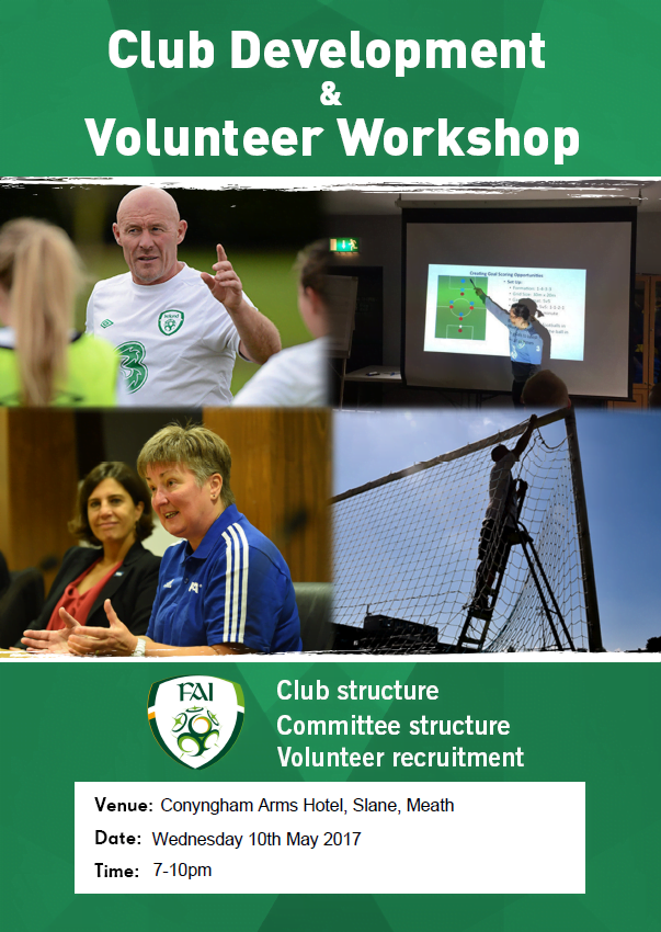 The North East Womens Regional Committee are holding a FAI Club Development and Volunteer Workshop this Wednesday 10th May at Conyngham Arms Hotel, Slane from 7pm to 10pm
