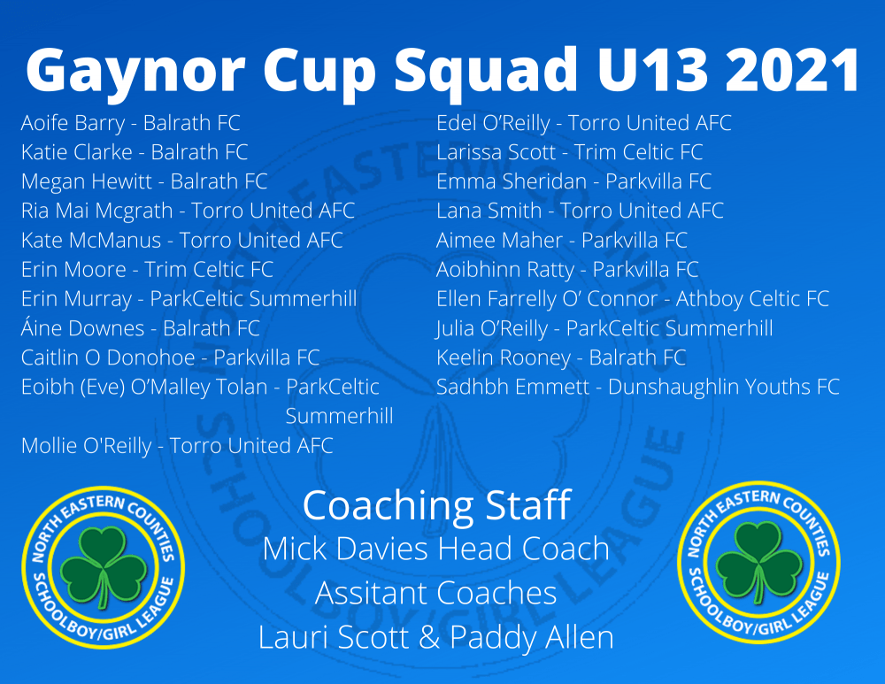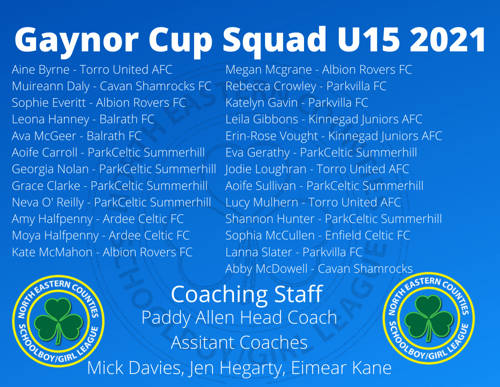 We are delighted to announce our Gaynor Cup Squads u13 & u15 and our Kennedy Cup Squad Selection for 2021.