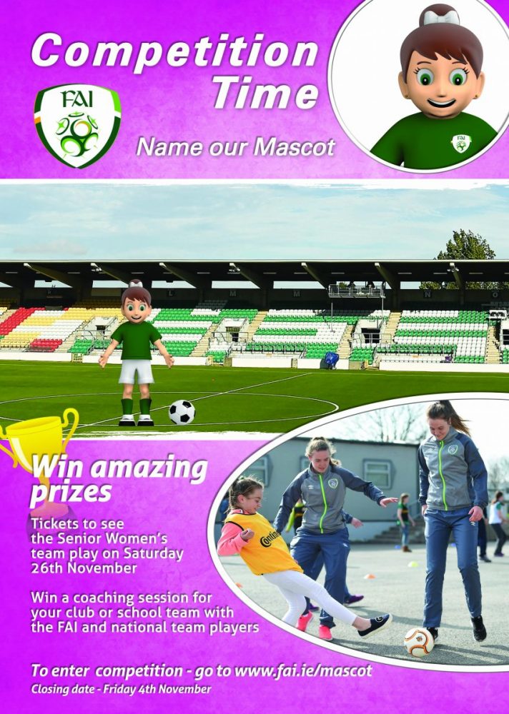 The FAI are looking to launch our new women’s Mascot at the Women’s National team friendly on 26th November.